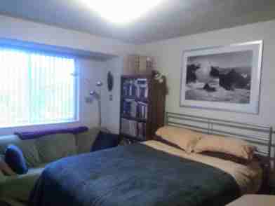 Your bedroom measures 15'-6" x 12' (186 sqft), has two closets and a large west-facing window. It gets great lighting during the day and comes with blinds for privacy.