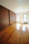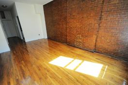 This is a beautiful studio apartment in Midtown East. The apartment features hardwood flooring, high ceilings, and exposed brick wall.
