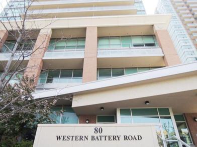 Enjoy Care Free Living in this Professionally Managed 2 Bedroom/1 Bathroom Corner Suite located at "80 WESTERN BATTERY ROAD, UPPER PENTHOUSE 10" centrally located in the convenient and highly desirable "LIBERTY VILLAGE" neighborhood of Toronto at "KING AND STRACHAN" with TTC literally around the corner and surrounded by great neighborhood amenities.