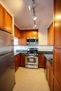 A gorgeous dark granite kitchen with cherry laminate cabinets and brand new upgraded stainless steel appliances, including microwave and dishwasher, rests atop cream marble flooring. The renovated bathroom with tile flooring comes equipped with a well-planned shower/bathtub fusion.
