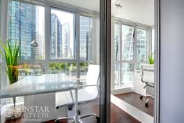 Beautifully furnished executive condo in the heart of Coal Harbour. Breathtaking water and mountain views. One bedroom, One bath and den, In-suite laundry, one parking space, additional guest parking available, indoor pool, gym, media room, all utilities included.