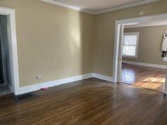 This one bedroom one bathroom apartment features beautiful hardwood floors, crown molding, fresh paint, and a ton of exterior charm. There is a fence in back yard for your qualified furry friend and a new rear exterior porch to hang out on. There is also ample storage space in the basement and your own washer and dryer down there.