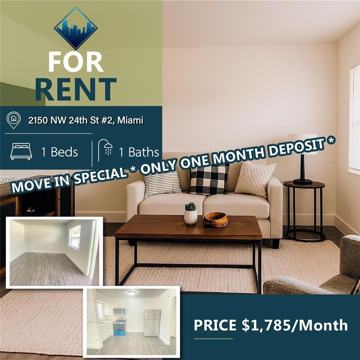 Bright & Move-In Ready! This 1BD/1BA home in the heart of Allapattah offers a comfortable layout, modern fixtures, and inviting outdoor space. Interior features dark gray vinyl flooring throughout, white kitchen cabinets offering a bright clean look. Lots of bright natural light in the unit. Easy access to shopping, local businesses, and schools. WATER INCLUDED IN RENT + one parking space. *MOVE IN PROMO* MOVE IN WITH ONLY FIRST & ONE SECURITY. **SECTION 8 WELCOME**