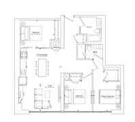 Brand new building in King West, built by Great Gulf, offers a rare 3 bedroom + 2 washroom floor plan boasting 1095 square feet of living space. The unit features modern, neutral finishes, equipped kitchen with stainless steel appliances, and a spacious living area with large windows providing plenty of natural light. A perfect property for professionals seeking a short commute to the office, with an option to also work comfortably from home.