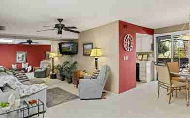 Enjoy a splendid setting overlooking the large pool and spa and garden/mountains with tennis just steps away. Upscale and impressive furnishings! The open concept living features skylights and upscale furnishings. There is the primary bedroom and bath with the den set up with a second bed next to the other bath. New HVAC unit . Covered assigned carport. Palm Canyon Villas features 4 Pools, 4 Spas, 4 Tennis Courts & Pickle Ball in a gated community. Great location within walking distance to restaurants & shopping including Trader Joes, Target & Starbucks. Tahquitz Creek Golf Course & Hiking trails also nearby and it's just a short drive to Downtown Palm Springs