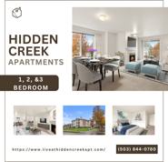 Welcome to Hidden Creek Apartments, where comfort and convenience enhance your lifestyle. Our Hillsboro, OR, apartments feature everything you need to live comfortably in a place that feels like home as soon as you walk through the door. Get a taste of the thriving neighborhood that surrounds you with easy access to a range of restaurants, stores, parks, and entertainment. At Hidden Creek, you'll enjoy the ideal balance of nature and modern city life. Take advantage of nearby attractions like 53rd Avenue Community Park or Noble Park, plus close proximity to Nike, Intel, and Adidas headquarters. Visit Insomnia Coffee Co., Salam, or Nine Dang Fine Thai for a bite to eat, and then come home to our welcoming community. Choose Hidden Creek Apartments for the easy, sophisticated lifestyle you've been looking for.