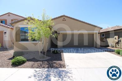 Cat friendlyAvailable Now! 1,517 Sq Ft! 3 bedroom, 2 bath single story home in Coldwater Ranch! 2018 build featuring modern upgrades throughout. Stunning eat-in kitchen with large center island/breakfast bar! Open living/dining, perfect for entertaining. Find neutral paint throughout + tile flooring in all the right places! This home offers generously sized bedrooms. Primary suite with full bath + walk-in closet! Ceiling fans + blinds throughout. Nicely landscaped backyard with covered patio! Minutes away from Four Corners - Shops at Lake Pleasant and more**Landscaping Services Included!!** 2 car garage! Coldwater Retreat is a well maintained community offering playgrounds, & biking/walking trails.
