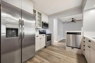 Nestled in the highly sought-after community of Boca Raton Square, this home is a true gem offering both style and function. Step inside and be greeted by the warm glow of new vinyl flooring and the sleek, modern feel of stainless steel appliances and updated light fixtures. The kitchen is a chef's delight, complete with beautiful countertops that provide ample space for meal prep and entertaining. With impact windows and doors throughout, you can enjoy peace of mind and energy efficiency. The layout is perfect for flexible living, with two bedrooms boasting their own full en-suite bathrooms, offering a private retreat for guests or family members.