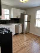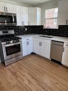 Renovated kitchen with stainless steel appliances and sleek finishes