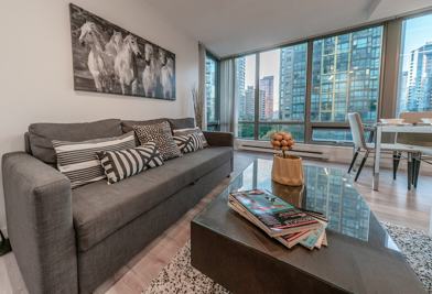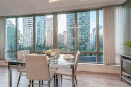2 Bedroom 2 Bath plus OFFICE Den with partial views of Coal Harbour. This boutique-style open plan living/dining with 9' ceilings is available NOW. This spacious unit is 900 sq/ft. Scores a 98 for walking distance, 100 for transit and 78 for bike. 5 mins walk to STANLEY PARK and ROBSON street. HighSpeed Internet & utilizes are included