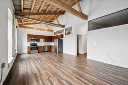 This sunny two bedroom loft apartment, located in a historic yarn mill, expertly blends old-world charm with modern comforts. Enjoy soaring ceilings, stainless steel appliances and contemporary finishes. This unit has incredible views of the river and surrounding area.
