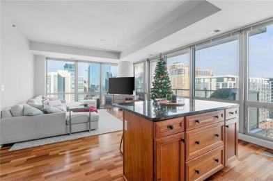 Enjoy amazing skyline views from this corner 2BR, 2BA condo with a wall of windows at Skyscape. Stepping in, you'll love the hardwood flooring, floor-to-ceiling windows throughout, bedrooms on opposite sides of the unit, built-in desk, and balcony with terrific downtown views. Kitchen features gas oven, stainless steel appliances, granite countertops, and large island with space for barstools. Skyscape also has 24/7 front desk staff and onsite professional management, 6th floor patio and community lawn, fitness center, community room, jacuzzi, sauna, indoor heated guest parking and more! Live steps from Skyway access, US Bank stadium, and East Commons Park; with quick access to I94 and 35W. Included with rent: 2 indoor heated parking stalls, gas & water/sewer/trash. Tenant responsible for electricity and elective cable and/or internet. App Fee: $78 per adult, Admin Fee: $150, Move-in fee: $350. Deposit is one month's rent.