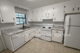 Newly updated 2BR, 1.5BA apartment in the heart of Pace. Interior updates include neutral paint, wood-look flooring, ceiling fans in both bedrooms, and modern fixtures throughout. The kitchen features tile floors, refinished cabinets, updated counters, new hardware, and a large single-bowl sink.