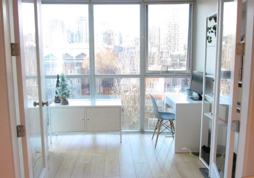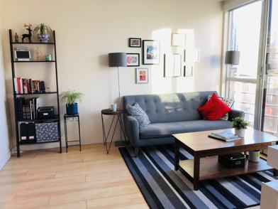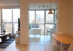 Located in downtown Vancouver's Yaletown neighborhood, this 700 square foot 1 bedroom with a large den (perfect as a home office!) has all the modern amenities for comfortable living. Start in the fully equipped kitchen offering stainless steel appliances , plenty of cabinet space, subway tile backsplash and eat in breakfast bar. Your open concept offers a lovely dining area with seating for 4, access to your comfortable main living area and flexible den area. Find your living area with a modern sofa perfectly positioned to enjoy lovely city views or relax.