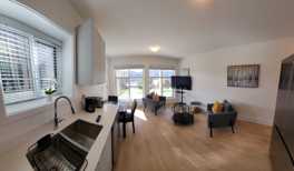 Nearly new 720 sqft fully furnished 2-bedroom ground level suite with ocean view in the prestigious neighborhood of Port Moody. All you need is your personal stuff. Two (2) minutes walk to the bus station. Close to walking trails with water views. Short drive to Buntzen Lake, While Pine Beach and Belcarra Picnic Area.