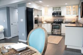 Inside, you’ll love the modern touches with stainless steel appliances, in-unit washer and dryer, stylish blue accents, and dark wood flooring that creates a warm, inviting feel.
