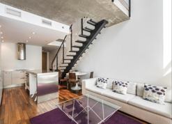 This ultra modern european style loft boasts of large windows, high ceilings, historic contrete pillars, hardwood floors, imported italian kitchen cabinetry and modern bathroom with separate glass shower.