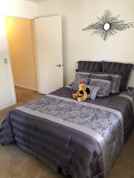 Full-size washer and gas dryer in the bathroom with bi-fold doors to hide the appliances with shelving above for additional storage. Gas stove, fridge, dishwasher, garbage disposal and large walk-in closet in the bedroom as well that has brown wood vinyl
