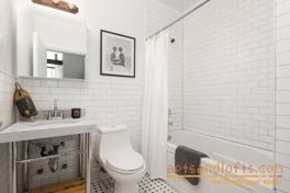 The custom designed, open kitchens feature white Shaker style cabinetry, soft Grey Quartz countertops, glass subway tiled backsplashes, polished chrome fixtures and lustrous GE stainless steel appliances. Bathrooms offer exquisite designer finishes such as black and white tiled floors, rustic industrial lighting, classic white subway tiled walls, deep-soaking bathtubs and magnificent, custom-built vanities with Carrera marble tops.