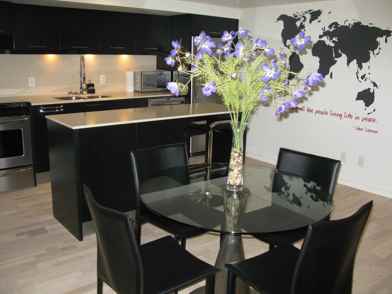 Newly built modern condo ideally situated in the trendy “Quartier des Spectacle”. A 5 min walk to McGill Campus. Enjoy this spacious open concept and newly furnished 1 bedroom Condo equipped it high-end stainless steel stove, fridge and dishwasher, granite countertops and Zen style bathroom. Fully equipped with queen size bed and sofa bed. The apartment is fully furnished including linen, towels, kitchen utensils, etc. Heating and electricity and hot water and air conditioning is included in the rent. there is also access to the pool and a fully equipped gym and sauna. The building is very secure with a 24 hour security guard.