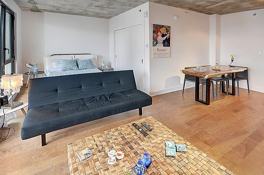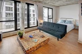 SUPER RENTAL DEAL: Bright, impeccable furnished/equipped studio, luxury finishes, huge private balcony at the fabulous 21e Arrondissement Phase 2, available September 1, only $1550/month! Includes all utilities, storage locker, furniture and accessories. No parking included.