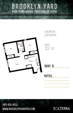 Brooklyn Yard is SolTerra's newest project a new LEED Platinum apartment on the industrial edge of Portland's Brooklyn neighborhood. Located across the street from the Willamette River and only two blocks from the Springwater trail. Just minutes to downtown Portland, easy access via the new Orange Line light rail transit line and the Tillicum Crossing Transit Center. There are also five bus lines within a block from the property. Close to Division and Swellwood restaurants, Reed College and OHSU, right off McLoughlin and a block from The Super Sport 24hr Fitness