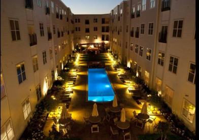 201 Twenty One full of amenities, including an outdoor pool and beautiful courtyard with BBQ grills and fire pits, movie theater room, meeting room, internet room with large Mac Computers and printer for resident use, club room with pool tables and kitchen, fitness center with a yoga room, bicycle storage room, and a dedicated covered "non flooding" parking spot. Residents can reserve the movie room and club room, as well as the yoga room. I've done this quite frequently for social gatherings and yoga classes.