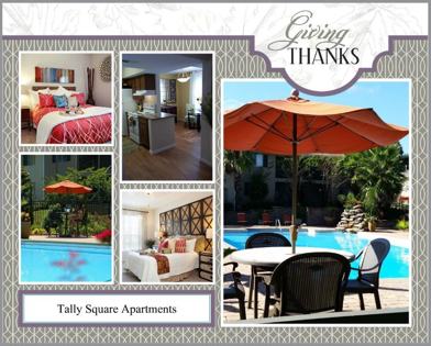 You will be amazed by our endless AMENITIES! Take a dive into our Swimming Pool Oasis on a hot day or work up a sweat in our 24 hour State of the art Fitness Center. Whether you are seeking indoor or outdoor amenities we have it here for you at TALLY SQUARE! Enjoy our Internet Cafe Center with FREE wi-fi and Brand New Dog Park! All of these amenities are great but the biggest star is our Spacious Apartment Homes! Come check us out TODAY!