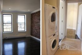 Large newly renovated 2 bedroom apartment located in the heart of Williamsburg, near plenty of restaurants, bars and shops. 2 blocks from the J M Z Marcy street train Station, and 5 minutes to the G and L train at Lorimer street, both trains will get you into Manhattan in under 5 minutes. Bedrooms comfortably fit a queen size bed, dresser and double door closets in each. There is a large open kitchen with a large living area as well..Light floods every inch of this apartment, with exposed brick in the living room and bedrooms and a Washer/Dryer in the unit! This is a must see.. Schedule a viewing today!