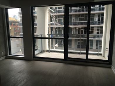 The Brant Park: modern, brand new, south facing, loft style with concrete ceilings, corner unit in the Entertainment and Financial District. H/E Washer Dryer, Gas hook-up on Balcony, Floor to ceiling Blinds (to be installed), Privacy Drape for Bedroom allowing option to open for additional space, ambient under-counter lighting. Scott