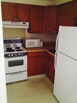 *Kitchen with electric range, garbage disposal, and refrigerator
