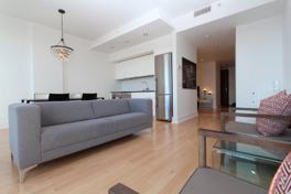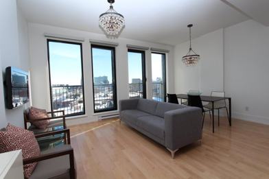 Welcome to the 333 Sherbrooke! Fully Furnished. This beautifully renovated condo offers high ceilings, large closets, large bathroom with Italian shower,beautiful hardwood floors, and a stunning view of downtown. Semi-closed bedroom. Comes with a garage! Secure building, close to St Denis, St Laurent and downtown. Gym and Exterior rooftop pool.