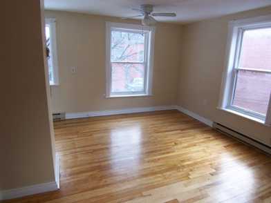 The apartment is very quiet and features restored hardwood floors, Berber carpeting, freshly painted walls and wood door and trim moldings. Apartment has many large windows on all four sides.