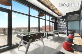 24 hour fitness center, a lounge equipped with a wet bar and flat screen TV, and an entertainment/game room that leads onto a large deck with stunning views of Manhattan and Brooklyn.