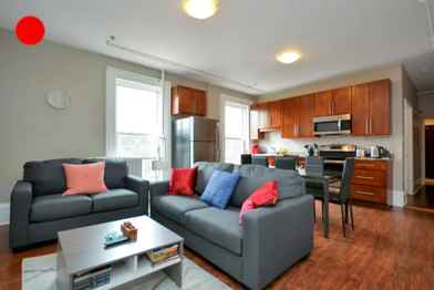 Our central three-bedroom apartment boasts large windows for ample sunlight, comfy beds and modern design and finishes. It has everything you need for a night in, and is close to all the city has to offer if you're looking for a night out! Includes free parking spot for one vehicle.