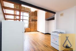 1 Bed / 1 Bath in Bushwick, Brooklyn. Pets are allowed. This spacious open loft has more personality than your weird Aunt. Huge windows and surrounded by exposed brick. The lofted area can fit an entire bedroom set up and an office. The building itself has tons of funky fresh features like, practice space for musicians, Ping pong and air hockey, and a yoga/dance studio, and a dog park in the back! Tons of bang for your buck!