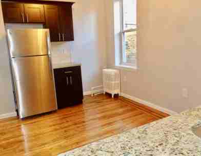 Ample studio-apartment on the 1st floor. Renovated kitchen and bath and in a great location in West New York. Brand new appliances and bathroom fixtures. Nice, well tended combination of wood flooring in the living areas with tile in the kitchen and bath for a fresh yet cozy feeling. Right on Boulevard East and less than 30 minutes by bus to New York. Spend your time enjoying, not commuting! Enjoy the view while you wait f or the bus, that is, if you have time because buses come every few minutes.
