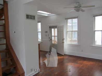 The unit also features the following: -Hardwood Floors on first floor -Carpeted upstairs bedroom and walk in closet -Updated kitchen w/ full size gas stove and dishwasher -High Ceilings downstairs w/ 2 overhead fans