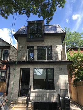 Great live work or family space. This spacious 3 -bedroom, 2-storey unit is in the desirable Bloor West Village near to Baby Point community and close to High Park and the Junction. It is in the top 2 floors of the building. newly built, high-quality, European finishes, 9' ceilings, oak hardwood and slate throughout. Pella windows on all four sides of the building provide plenty of natural light creating a bright, sun-filled cheerful space. Fabulous well-proportioned principal rooms. Beautifully appointed new kitchen w/walkout to deck, stainless steel appliances including gas stove/range. 3 well-sized bedrooms and 2 full baths. Large closets. Functional laundry station with AEG washer and dryer. Hunter Douglas window coverings included. Central air conditioning. Heat and hot water included, electricity extra. Parking can be arranged. Small dogs only and no cats.