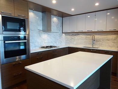• Kitchen: White stone countertops, Miele stainless steel appliances, gas stove top