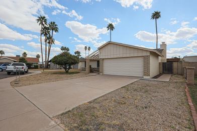 Nice 3BD 2BA home in cul-de-sac located in Tempe! Open kitchen with cherry-wood cabinets. Both bathrooms have granite countertops. Master has tiled shower. Enclosed sun room/patio with AC unit. Neutral tile throughout the living spaces, family room with fireplace. Inside laundry with washer and dryer provided. A delicious orange tree in front yard. Great proximity to the 60 and 101 - quick access to the entire Valley. A MUST SEE!