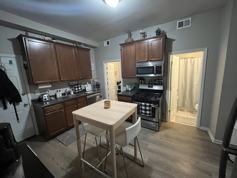 Upon entering, youre welcomed the eat-in kitchen which has modern upgrades, including stainless steel appliances, dishwasher, microwave, sleek countertops, and custom cabinetry.