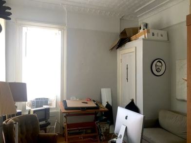 1 Bed / 1 Bath in Bed-Stuy, Brooklyn. All Pets Allowed. Bright and sunny corner unit with very high ceilings. Nice details like tin ceilings and original moldings & hardwood floors are combined with a renovated kitchen and bathroom. Spacious living room and large windows throughout. The bedroom fits a full/queen size bed and a desk or dresser but not much else. Great location across from a park, Citibike station, and tons of restaurants, shopping, and the A/C.