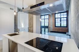 This industrial style unit boasts large windows, high ceilings, hardwood floors for the bedrooms and ultra modern bathroom with glass showers