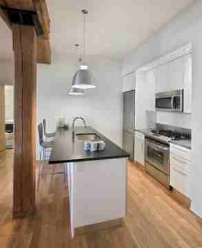 Quiet, spacious, corner 2-bedroom/2-Bathroom home with walk-in-closet (WIC) and island kitchen. This unit has generous closet space, an inviting wide entryway, hardwood flooring, in-unit washer and dryer and high ceilings. meticulously preserved brick facade is matched by a luxurious interior design aesthetic. Custom Italian kitchens, stone countertops and exposed wood beams come standard. In historic DUMBO. stress-melting 2,500-square-foot rooftop lounge deck.