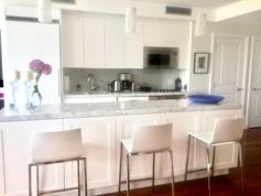 The unit is approximately 1200 sq ft and offers generous oversized rooms, 2 stunning baths, custom kitchen, designer finishes and much more. This expansive unit is the perfect place to entertain & impress.