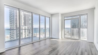 LARGE 2 + DEN overlooking Toronto - 1002 sq. ft split plan 2 bedroom w/large den. 325 sq. ft wrap around South/East views balcony w/room for lots of outdoor furniture. Master bedroom w/walk-in closet and designer ensuite. Bedrooms & Living Room all walk-out onto Balcony.