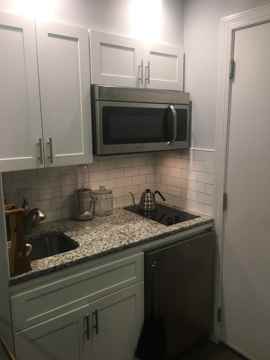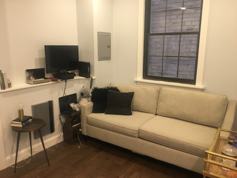 Recently renovated studio apartment on quiet street in Rittenhouse Square with beautiful, dark hardwood floors. Kitchenette completed with granite counters, stainless steel microwave and fridge, and 2 burner stove-top. Nice bathroom with marble floors and white subway tiled shower/tub. Available for the first week of June.