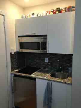 Recently renovated studio apartment on quiet street in Rittenhouse Square with nice hardwood floors. Kitchenette completed with granite counters, stainless steel microwave and fridge, and 2 burner stove-top. Nice bathroom with marble floors and white subway tiled shower/tub. Available for June, potentially available for earlier in May, inquire to hear more.