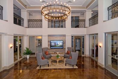Assigned covered parking space. Private balconies with courtyard views. Elevator access. Nine and ten foot ceiling.s Large walk-in closets. Designer kitchens with 42″ upper kitchen cabinetry, built-in microwaves, black on black appliances, pantry, frost-free refrigerators with icemaker, double stainless kitchen sinks, kitchen islands, and built-in computer niches. Stacked washer/dryer. Multiple phone and cable outlets. High speed Internet access available. Fire sprinkler system.